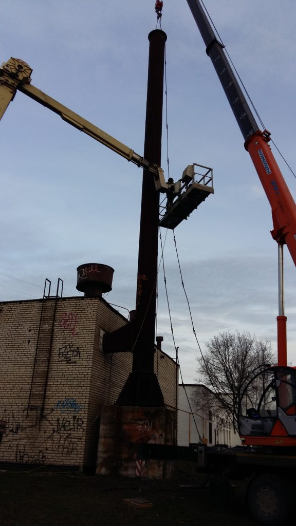 Демонтаж без сохранения трубы котельной г.Минск высотой 52 м.