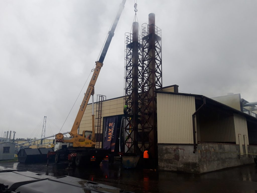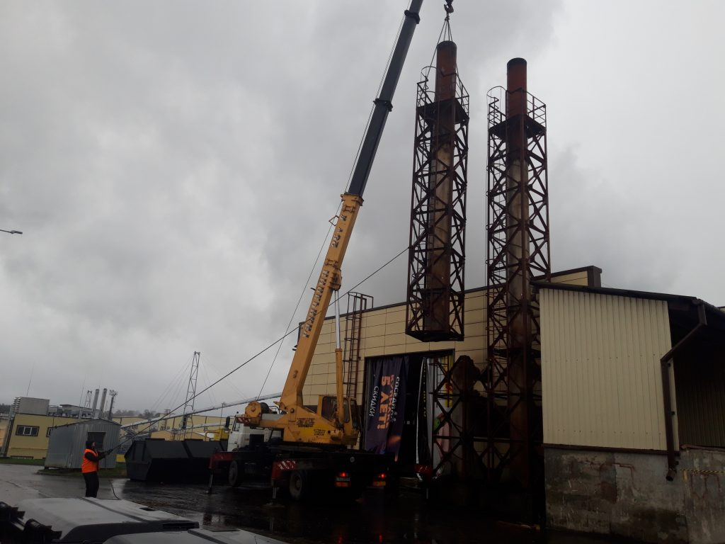 с сопутствующим демонтажем технологического проема, трубопроводов, воздуховодов, домовых труб, такелаж 2х котлов с сохранением весом 24 тонны каждый. Общий срок работ 10 дней.