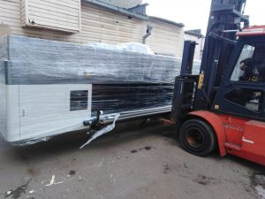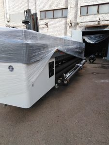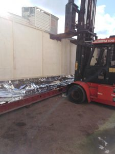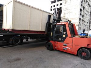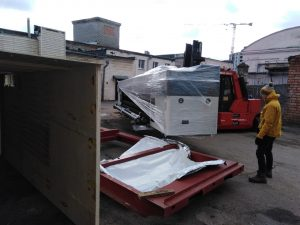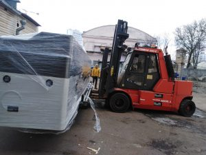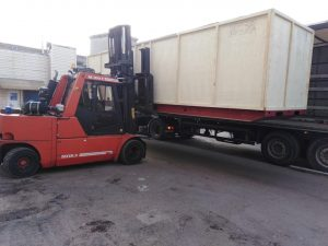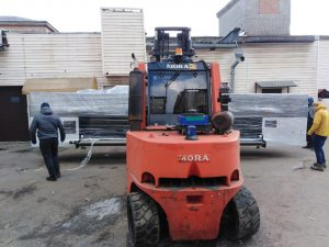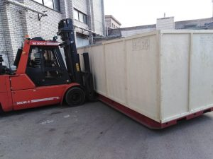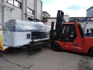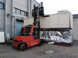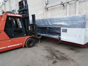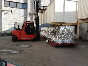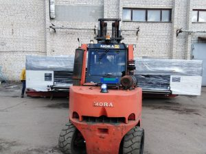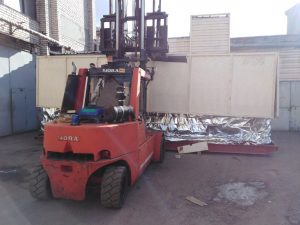 При невозможности разгрузки краном (повреждение оборудования стропами) г. Минск, использовали наш газовый вилочный погрузчик г/п 10 т