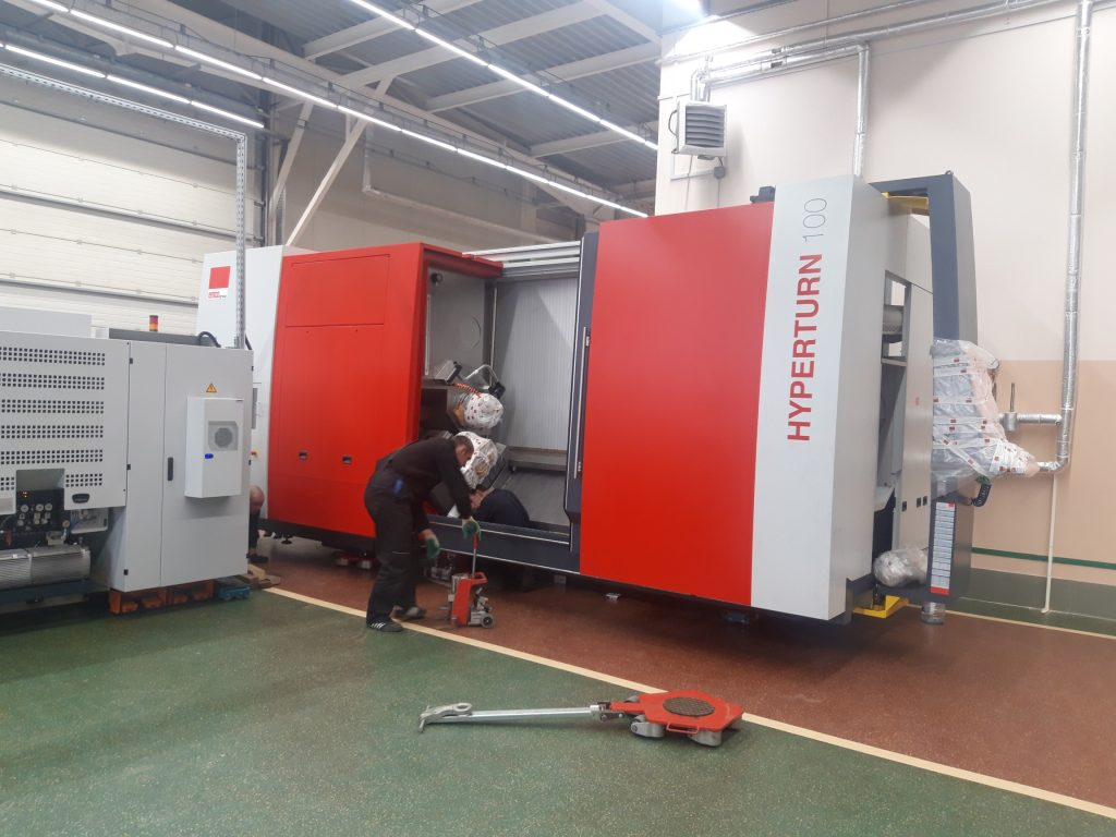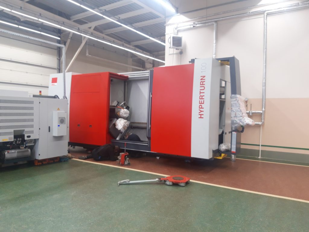 Разгрузка Токарного обрабатывающего центра в г. Барановичи ОАО «588 Авиаремонтный завод» весом 28 тонн с установкой в монтажное положение.