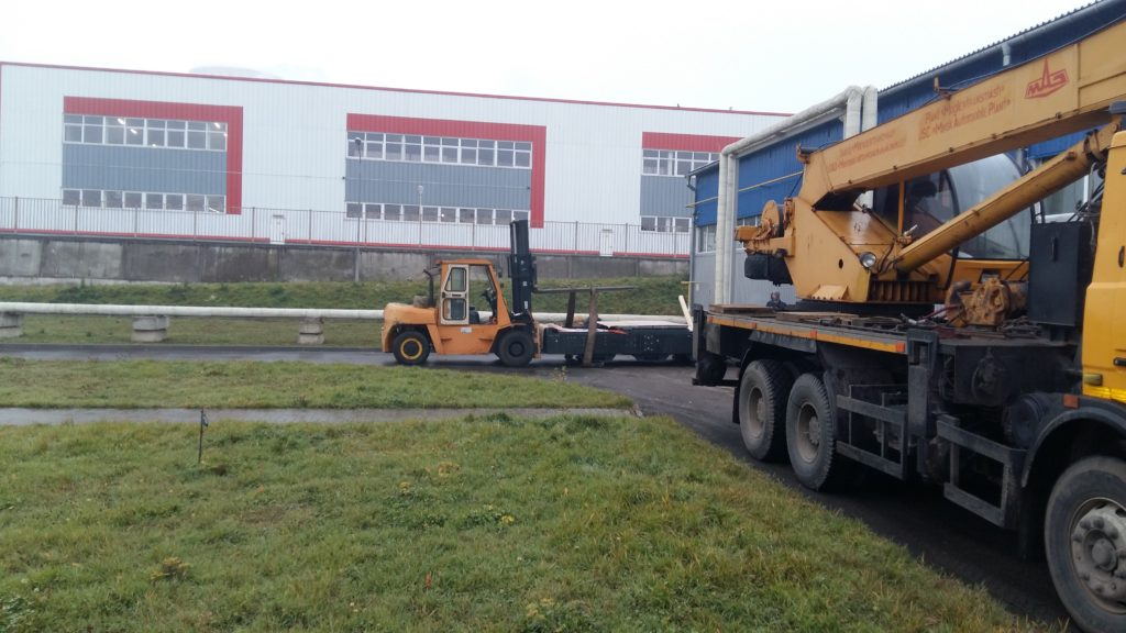 Такелаж просечного пресса весом 12 тонн на территорию улицы