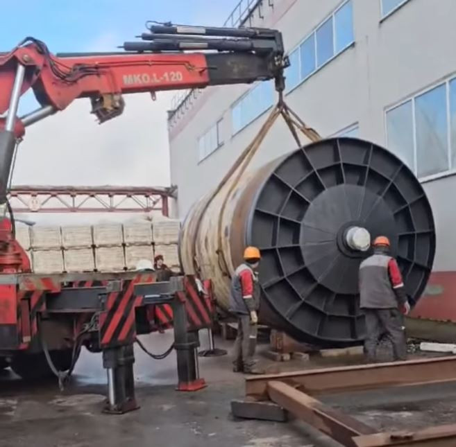 Такелажные работы по перемещению барабана мельницы весом 19,0 тонн. Минск