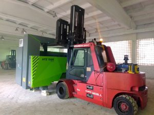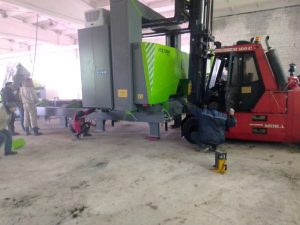 на станину в помещении ОАО » Бешенковический лесхоз». Особенности здания не позволяют произвести монтаж другой техникой кроме как вилочным погрузчиком. Время выполнения работ 2 часа.
